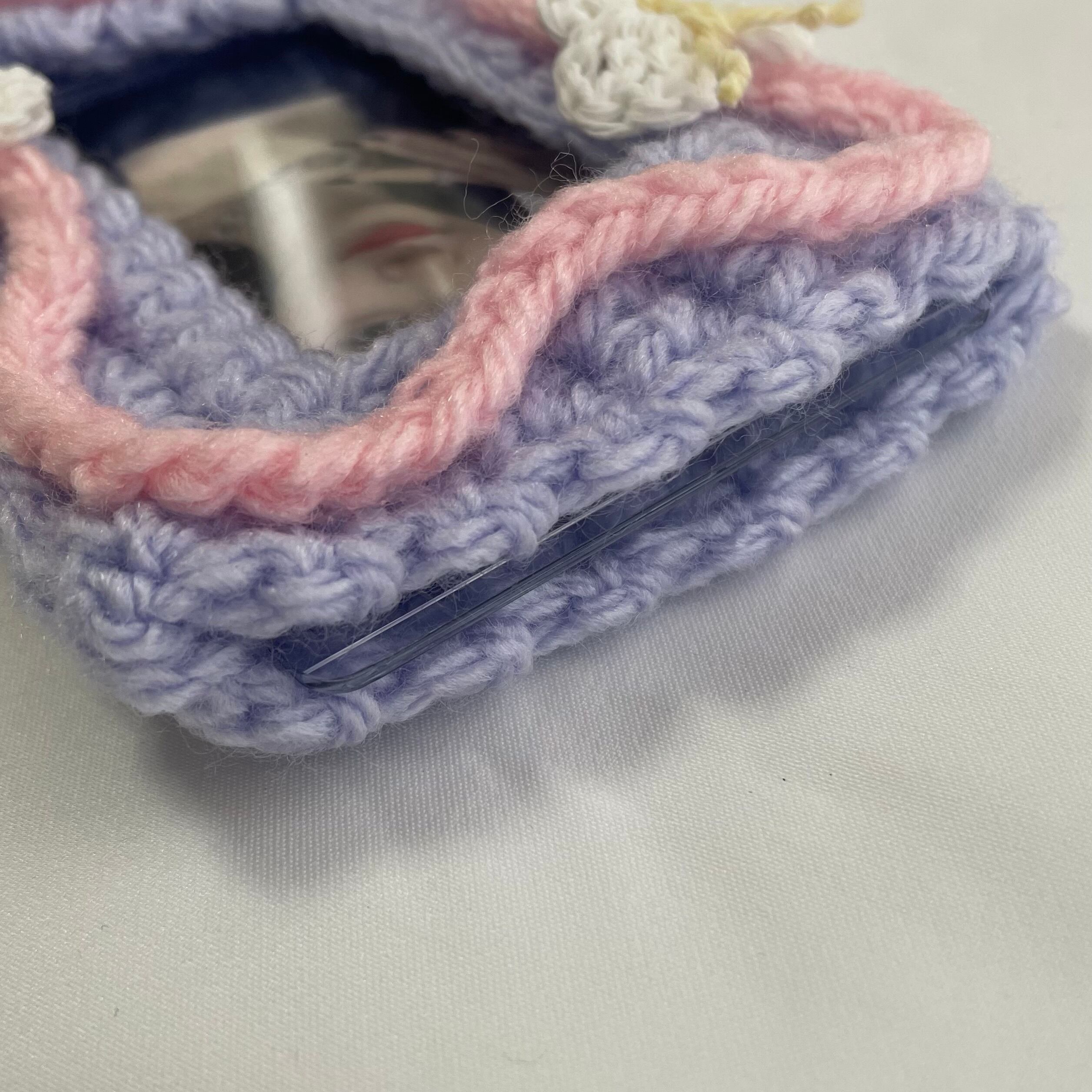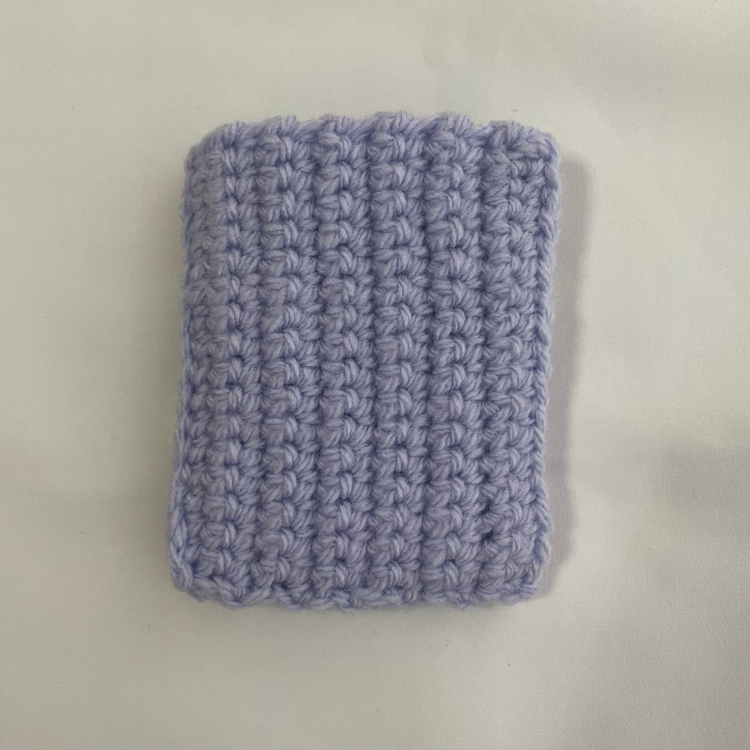 毛糸で編んだトレカケースです。
