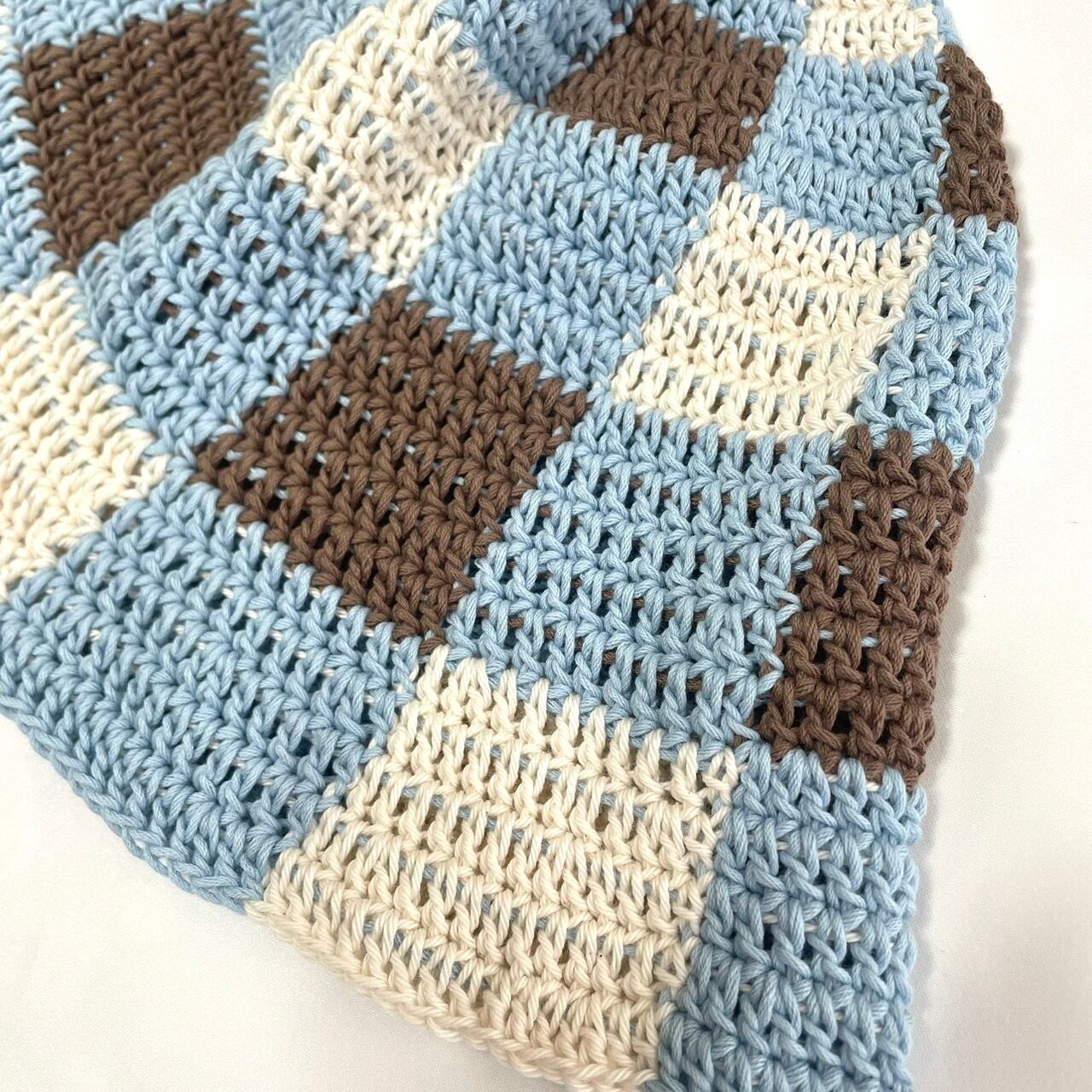 ライトブルー、ブラウン、アイボリーの3色を組み合わせたバケットハットです♪