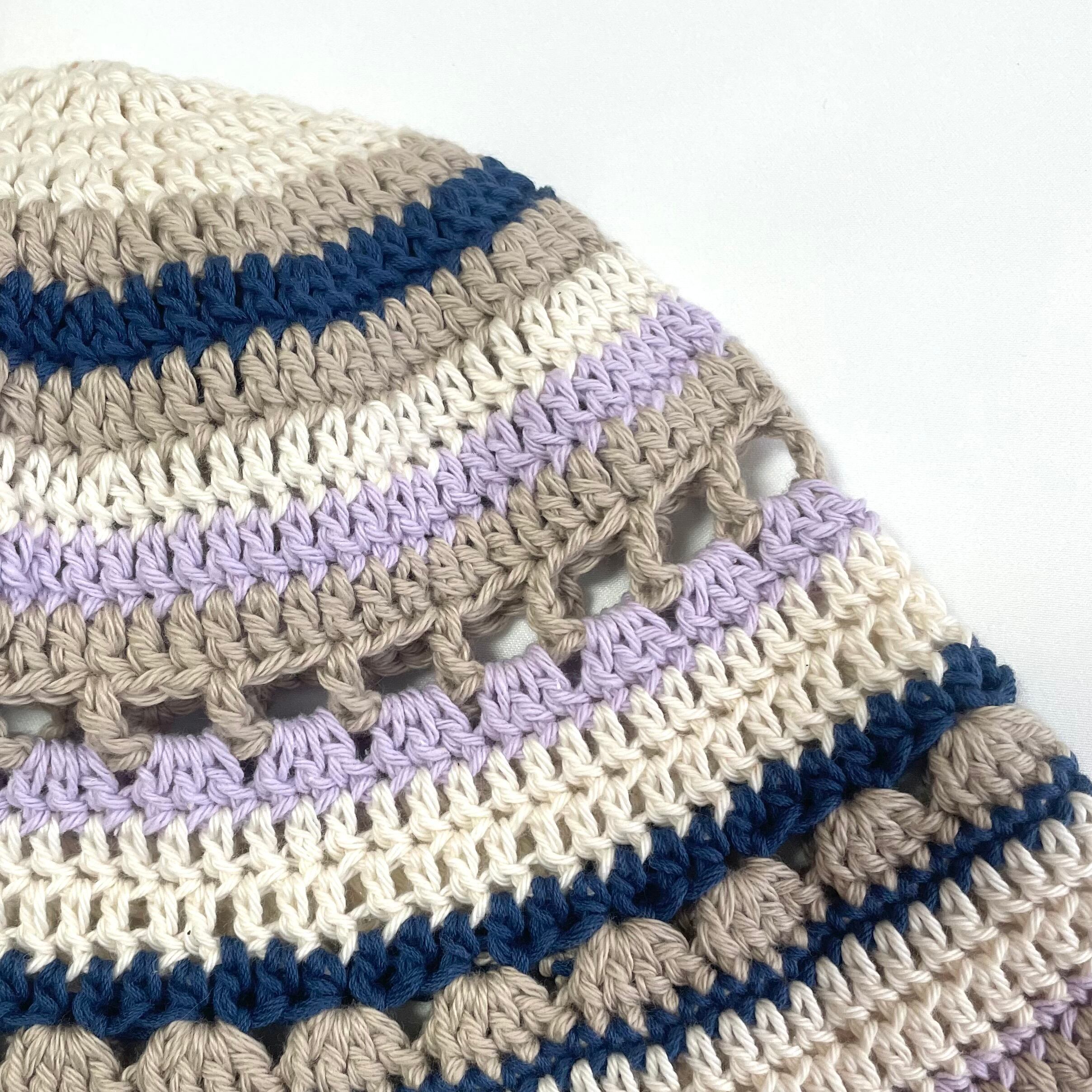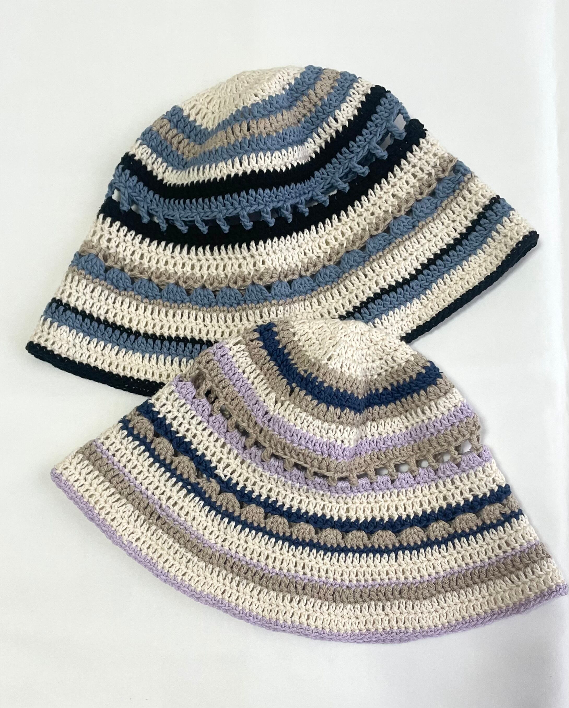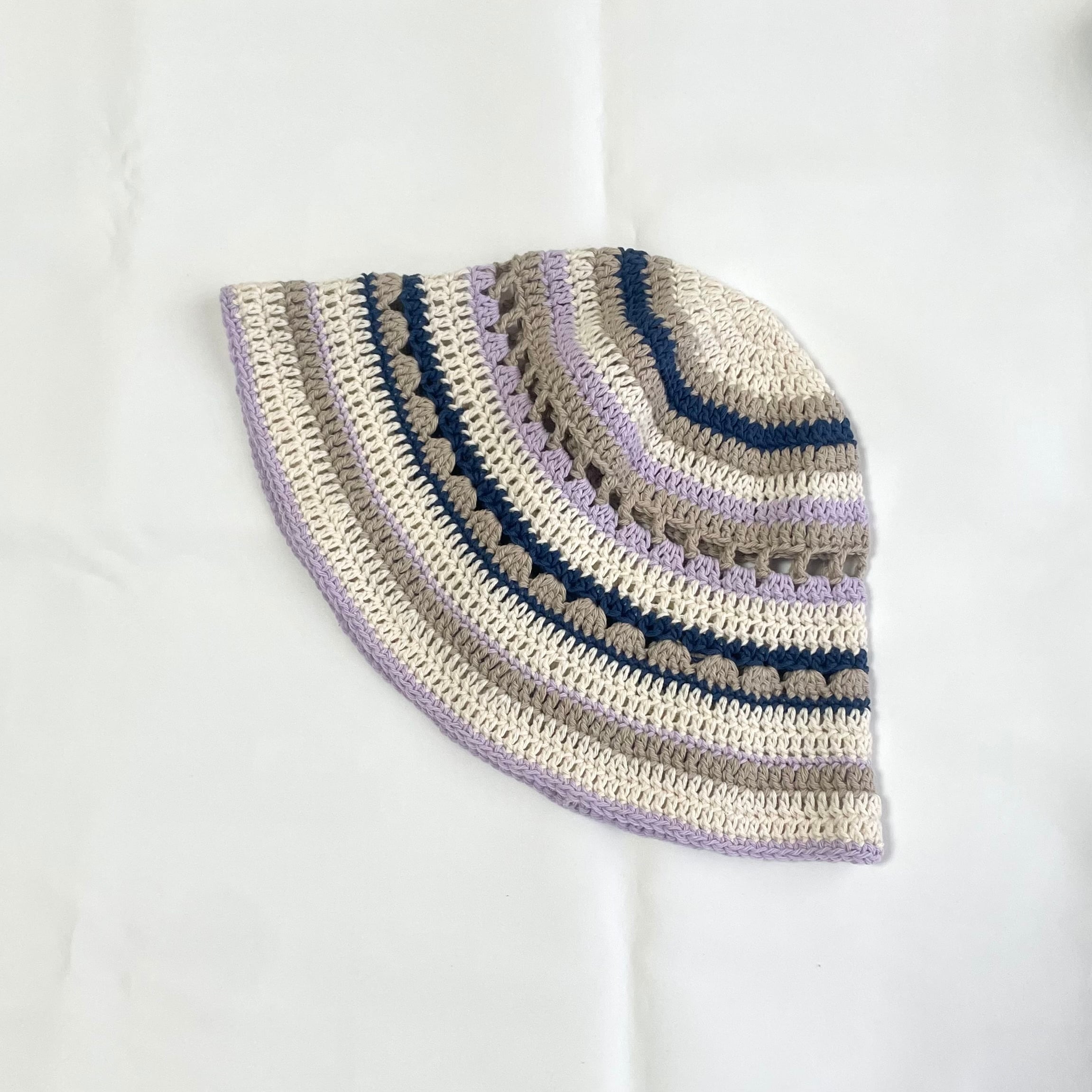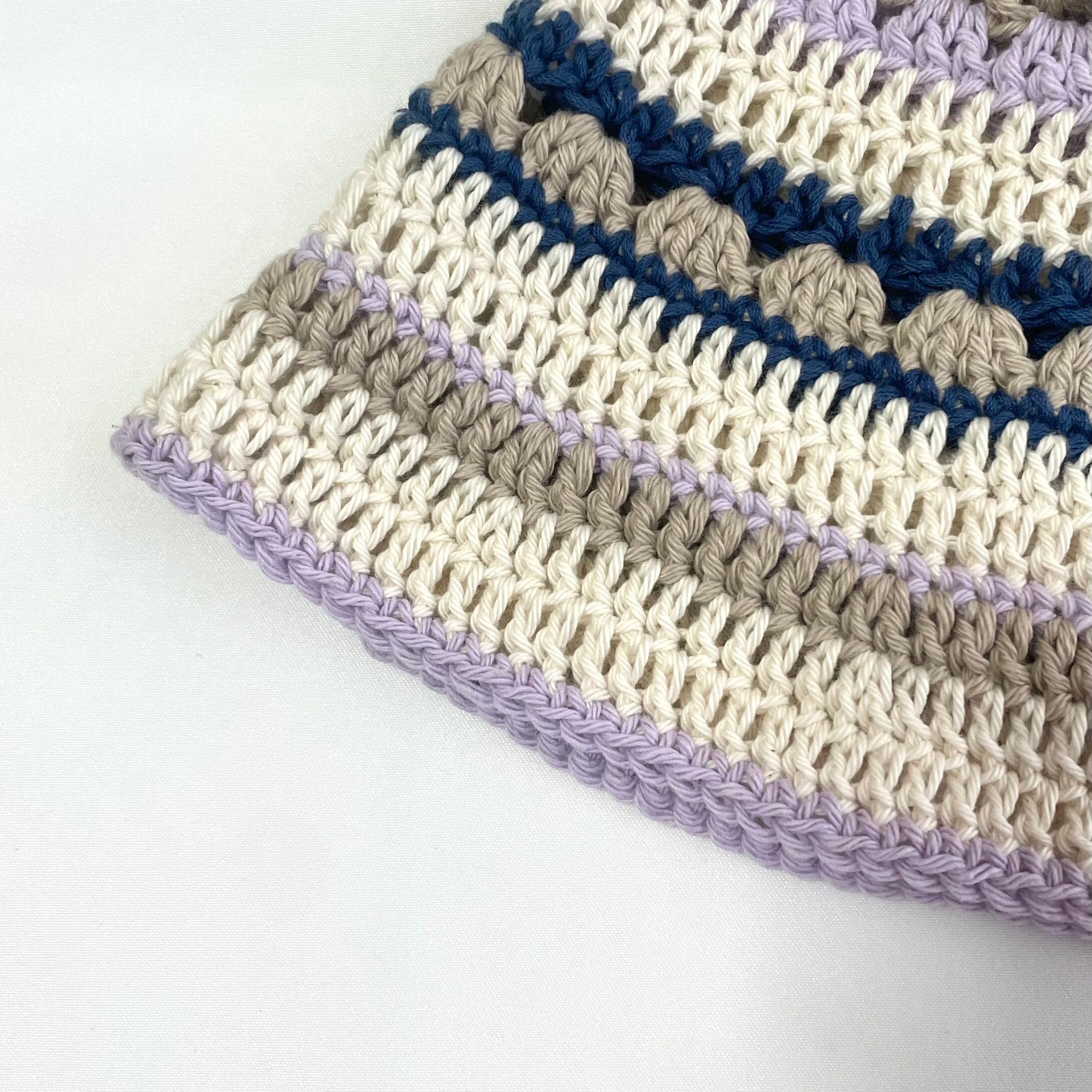 コットン糸を使用し、ひとつひとつ丁寧に編み上げたバケットハットです☀︎