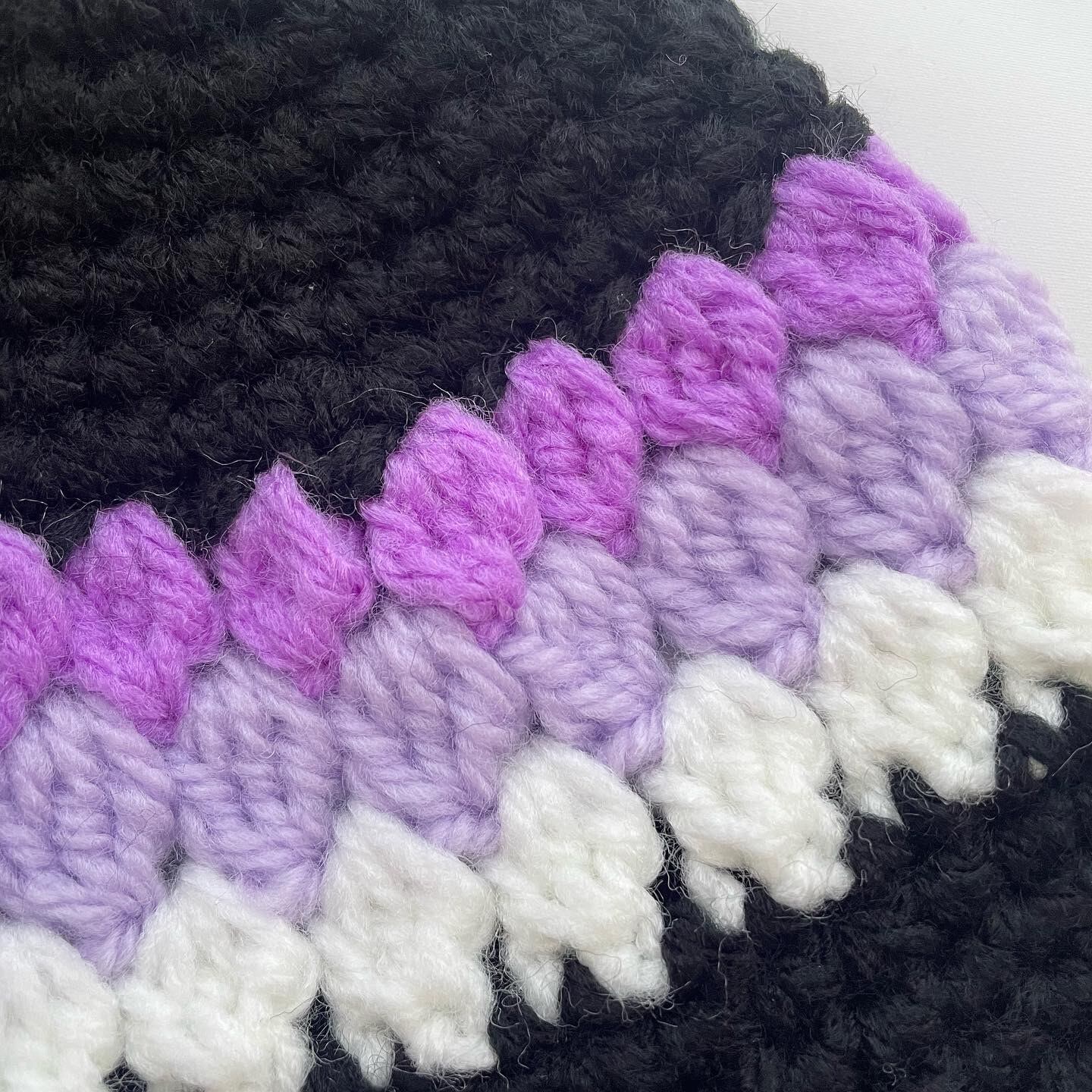 2色のパープルとホワイトを混ぜて、グラデーション風に編みました☺︎